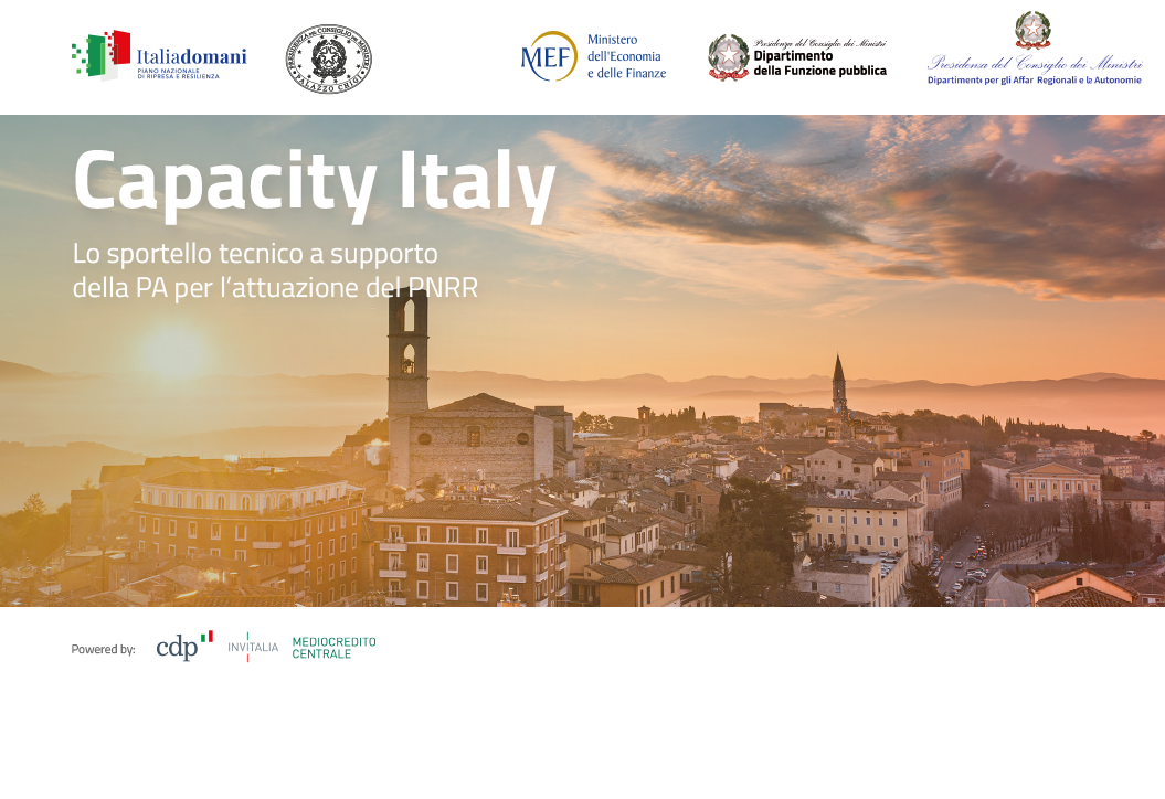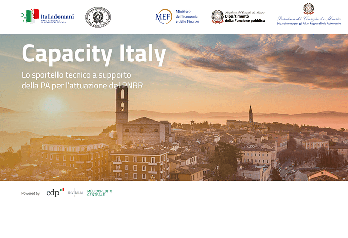 Da oggi è online Capacity Italy , il nuovo portale di assistenza tecnica per sostenere le amministrazioni pubbliche in prima linea nell’attuazione del Piano Nazionale di Ripresa e Resilienza: gli enti territoriali (Regioni, Città metropolitane, Comuni, Province) e non territoriali. Promosso dalla Presidenza del Consiglio dei Ministri, dal Ministero dell’Economia e delle Finanze, dal Dipartimento della Funzione Pubblica e dal Dipartimento per gli Affari Regionali e le Autonomie, il portale è facilmente accessibile anche dal sito Italia Domani ed è realizzato con il supporto tecnico e operativo di Cassa Depositi e Prestiti, Invitalia e Mediocredito Centrale, che assicurano le necessarie competenze tecniche.
