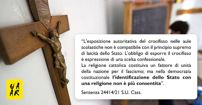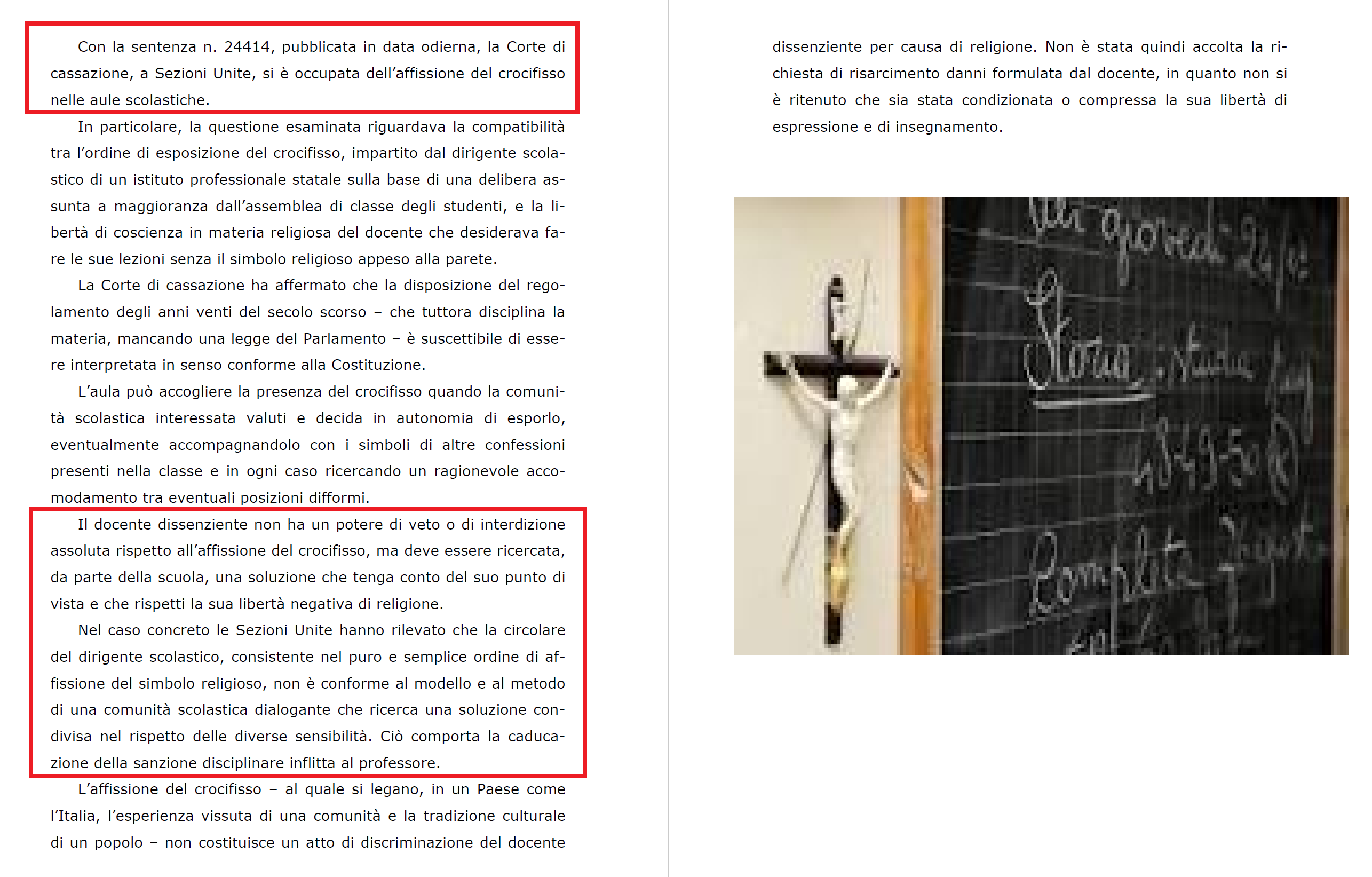 Crocefisso in aula scolastica - innovativa sentenza della Cassazione a tutela del docente dissenziente