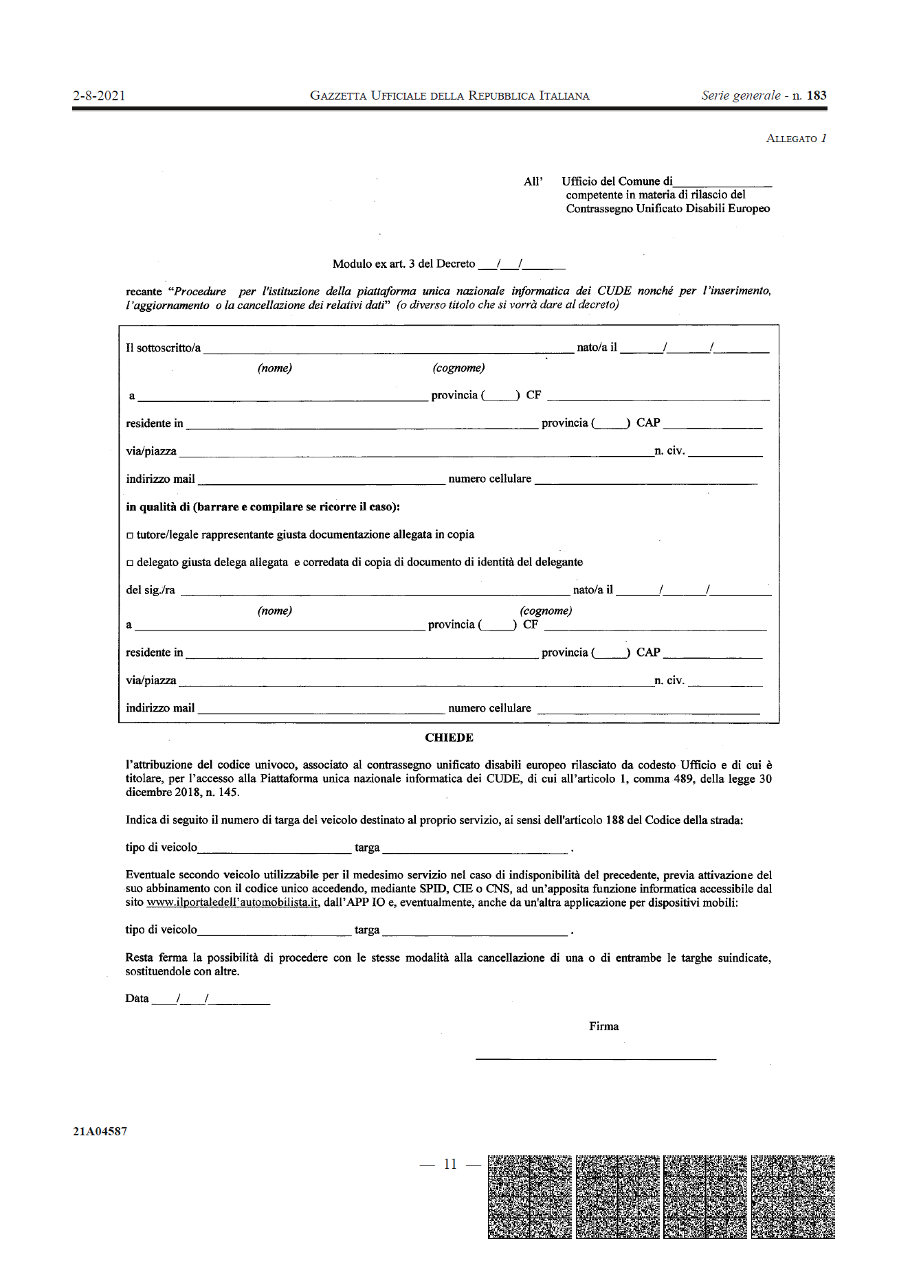contrassegni unici. (21A04587)