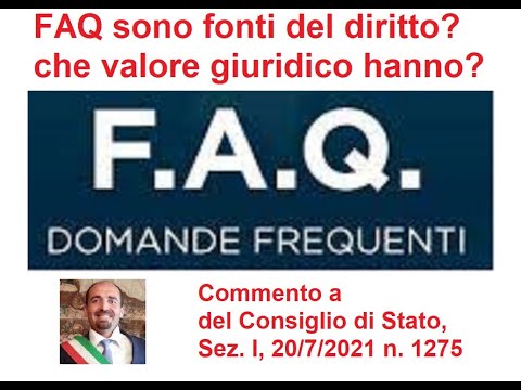 Le FAQ fanno parte dell’ordinamento (anche se non sono fonti del diritto) - Consiglio di Stato, Sez. I, 20/7/2021 n. 1275